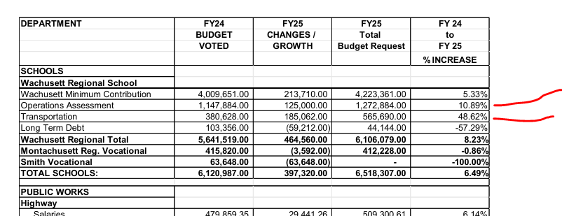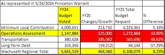 OVER TO THE “TRANSPORTATION” COLUMN, THEREBY REDUCING THE ACTUAL “DISCRETIONARY” AMOUNT PRINCETON VOTERS HAVE THE RIGHT TO SHOOT DOWN DURING THEIR 11 JUNE 2024 ANNUAL TOWN MEETING AND FURTHER DECEIVING THEM BY MAKING IT APPEAR THAT PRINCETON’S SHARE OF WRSD FY 2025 TRANSPORTATION COSTS INCREASED BY 48.62%, WHEREAS AS THEY ONLY REALLY INCREASED BY 9.90%