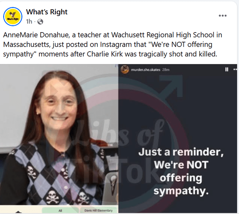 WRSD English teacher AnneMarie Donahue typifies the Sociopath Leftist Scum infesting the ranks of government school teachers and administrators.