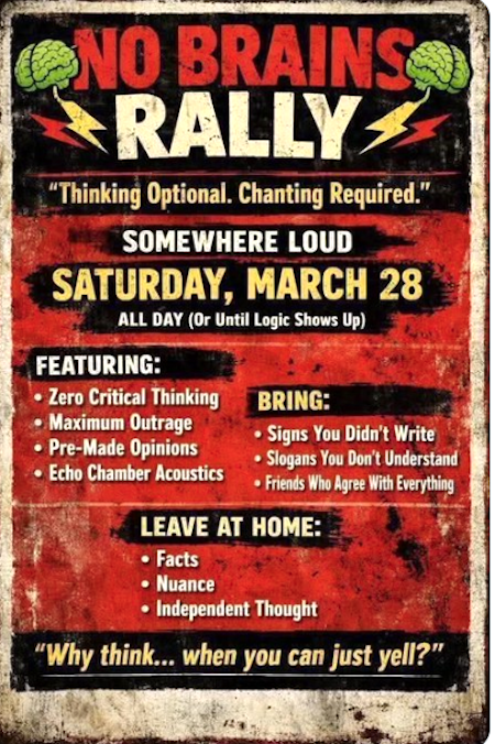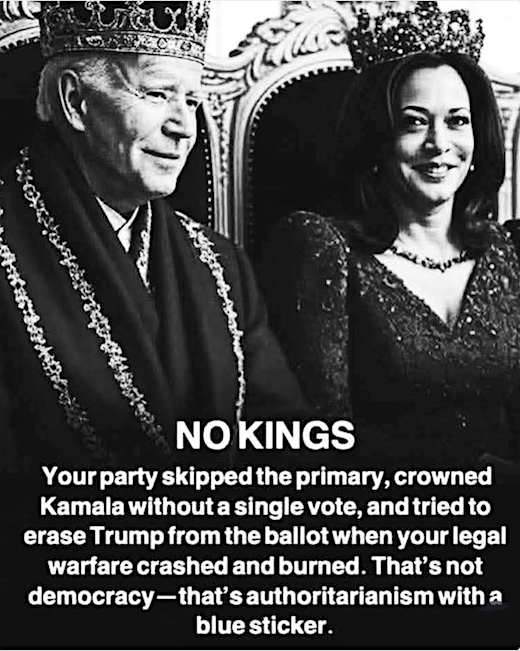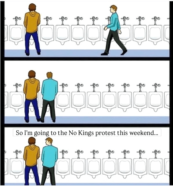 A FEW MEMES FOR THE STERLING GREEN SATURDAY MORNING ‘NO KINGS’ PROTESTERS Posted byjimgettensApril 5, 2026Posted inUncategorized J.G. Share this: Share on X (Opens in new window) X Share on Facebook (Opens in new window) Facebook Like Loading... Related
